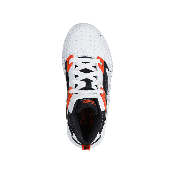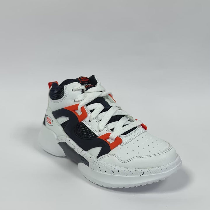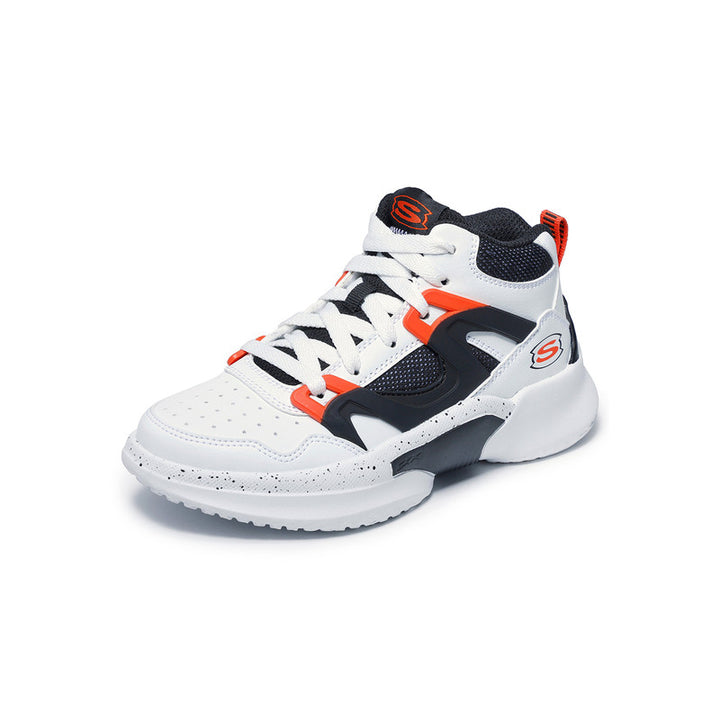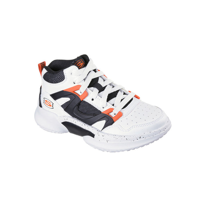 Las Skechers Court Hype (ref. SK 406073L WBO) son unos tenis de estilo “court” (inspirados en el baloncesto) diseñados para niños que buscan un calzado deportivo urbano con buena tracción, soporte y estilo. Esta versión combina una parte superior de malla y material sintético, caña media alta para mayor protección del tobillo, detalles de diseño funcionales como correa/strap o lengüeta tirador para facilitar el calce, y suela Skech Grip para tracción dentro y fuera de la cancha.