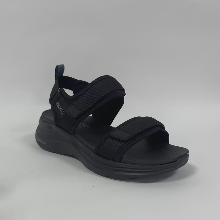 Las Skechers Vapor Foam “Laidback Moments” (ref. 120009 BBK) son esas sandalias que se sienten como vacaciones para tus pies desde que las calzas. Imagina caminar sin prisas por la ciudad, relajarte en casa, salir al parque o disfrutar del fin de semana con algo que combina comodidad + frescura + estilo oscuro y discreto (“BBK” le da ese toque elegante). Son ligeras, con diseño abierto, fáciles de poner gracias al cierre tipo velcro, y tienen ese perfil plano que no sientes que llevas tacón, pero sí estabilidad. Si quieres un calzado que no complique nada y que te acompañe cómodo, estas son perfectas