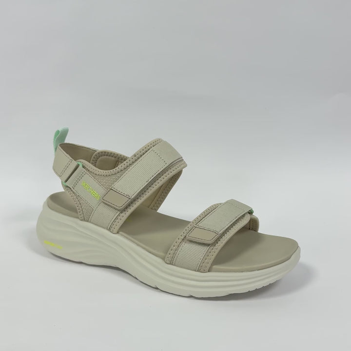 Las Skechers Vapor Foam Laidback Moments (ref. 120009 NTAQ) son esas sandalias ideales para balancear comodidad y estilo ligero. Pensadas para quienes aman caminar, viajar ligero, salir casual y llevar algo práctico que no pese ni moleste. El color beige natural es suave y neutro, combina con outfits claros o tierra, perfecto para climas cálidos o ambientes relajados. La espuma “Vapor Foam” amortigua cada paso, y los tiras con velcro aseguran un ajuste cómodo, rápido y sin complicaciones.