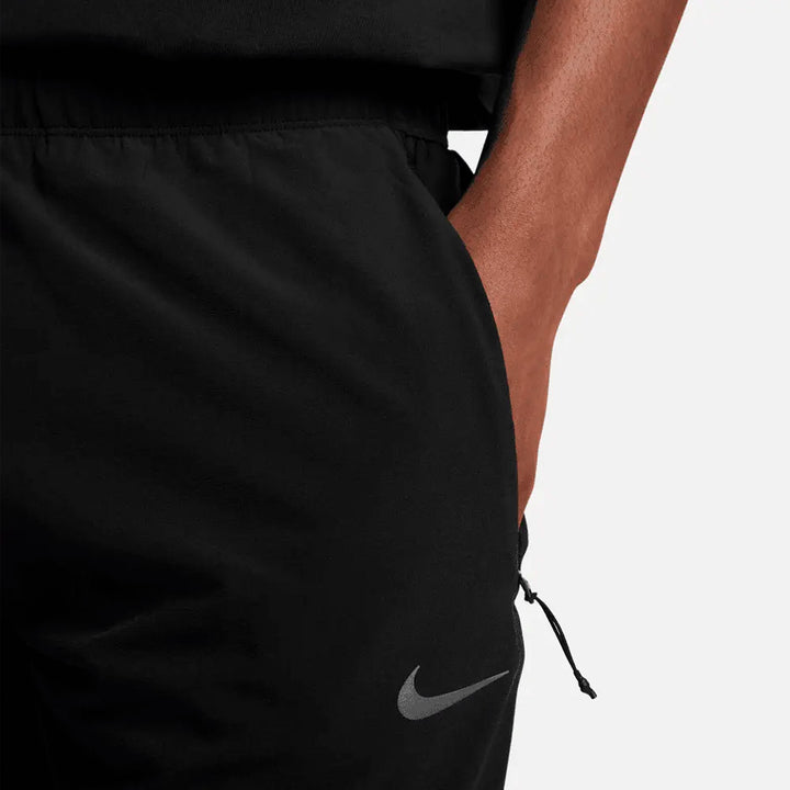 Los Nike Dri FIT Running Division Phenom (ref. FB6862 010) son unos pantalones de running diseñados para corredores exigentes que buscan el equilibrio entre rendimiento, ajuste y comodidad. Su tejido técnico con tecnología Dri FIT evacua el sudor eficientemente, manteniéndote seco incluso en los esfuerzos intensos. Además, gracias a su tela con stretch en 4 direcciones, ofrecen libertad de movimiento mientras capturan una silueta estilizada. La cintura Flyvent, que combina elastano con malla, aporta ventilación y un ajuste ceñido sin incomodidad. Para tus elementos esenciales, cuentan con bolsillos laterales con cierre y bolsillo posterior, todos preparados para asegurar tu teléfono, llaves o tarjetas. Los detalles reflectantes potencian la visibilidad en condiciones de baja luz. En color negro, son una pieza versátil que complementa cualquier outfit deportivo urbano.