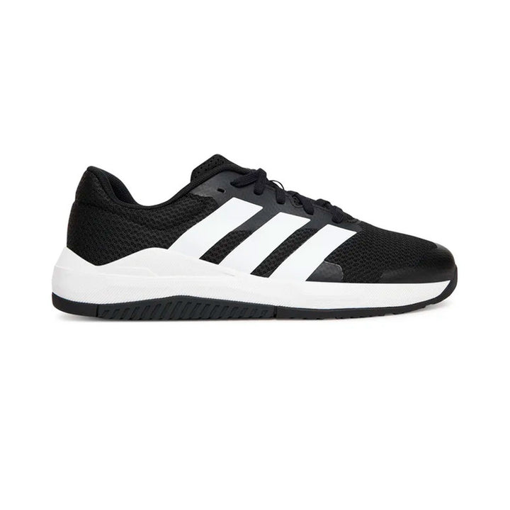 Los Adidas Dropset Base (ref. JS3045) son tenis de entrenamiento diseñados para hombres que buscan estabilidad y soporte durante sus rutinas de fuerza. Con un diseño de corte bajo, ofrecen una base sólida para movimientos explosivos y levantamientos pesados. La parte superior está fabricada en malla transpirable, reforzada con superposiciones 3D que brindan mayor sujeción. La suela exterior presenta un patrón de tacos multidireccionales, proporcionando tracción y control en diversas direcciones. Con un diseño en colores clásicos como negro, blanco y detalles en rojo, estos tenis combinan funcionalidad y estilo para tus entrenamientos más exigentes.
