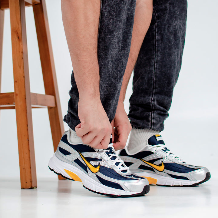 Los Nike Initiator combinan una estética inspirada en el running de principios de los 2000 con detalles modernos premium. Este colorway “Obsidian/Metallic Silver/White/Team Gold” presenta una mezcla sofisticada de azul marino profundo, plateado metálico y toques dorados en el Swoosh y la plantilla, que aportan un look elegante y contemporáneo. La parte superior en malla y superposiciones sintéticas no solo aseguran ventilación, sino también soporte donde más lo necesitas. Ideal para quienes buscan un sneaker urbano cómodo y versátil, con el aire vintage de la era Y2K pero actualizado con la tecnología de hoy.