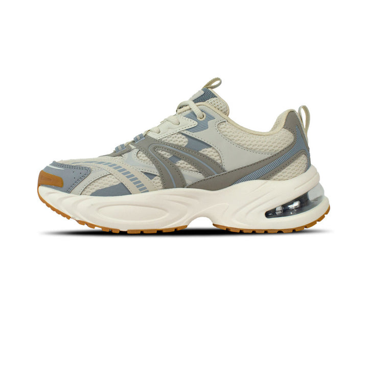 • Upper / parte superior: mezcla de malla (mesh) con sobrecapas de “duraleather” (cuero sintético resistente). Esto aporta ligereza, ventilación y estructura al zapato — ideal para uso urbano y confort continuo.