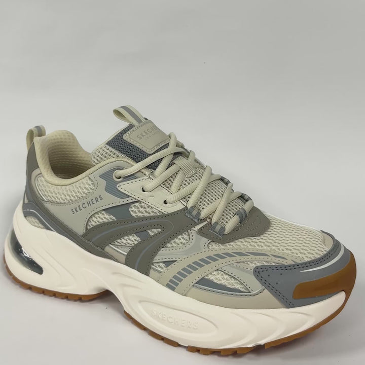 Skechers Uno Ryze (ref. 183199 NTGY) es un sneaker urbano / casual moderno dirigido principalmente a uso diario, ciudad y estilo streetwear. Su diseño busca combinar confort, amortiguación y un perfil moderno: es ideal para caminar, desplazamientos, salidas cotidianas o uso diario en contextos urbanos. No es un zapato deportivo de alto rendimiento, sino más bien un calzado versátil para el día a día con buena comodidad. Este modelo encapsula el estilo “todo terreno” casual: cómodo desde el primer paso, con suela acolchada, buen soporte y estética que combina fácilmente con ropa informal, jeans o atuendos urbanos.