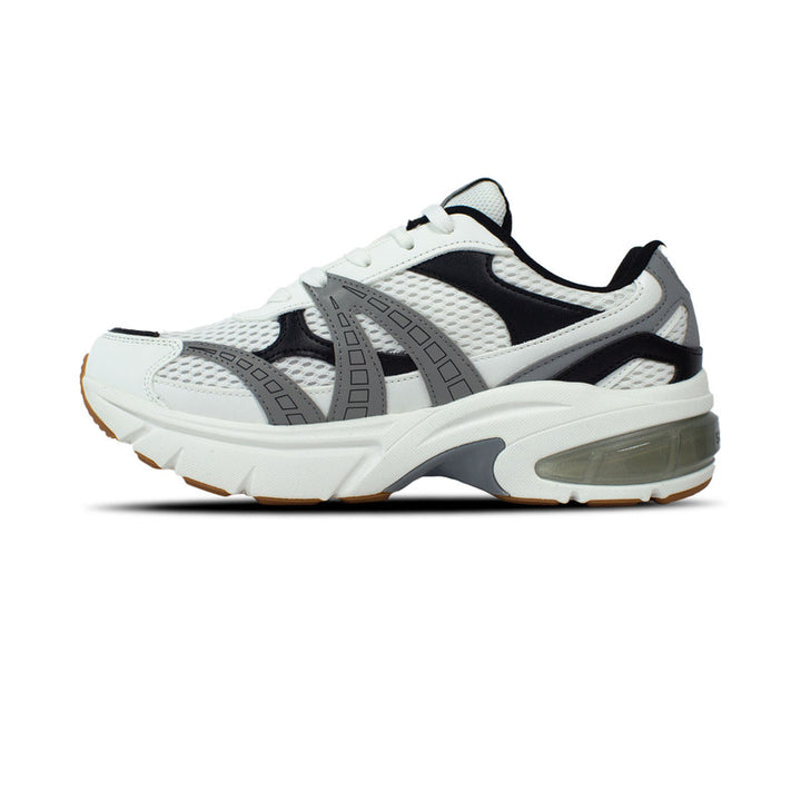 • Upper / parte superior: mezcla de materiales sintéticos tipo “duraleather” + malla (mesh). Esto aporta estructura, resistencia y al mismo tiempo ventilación — un buen equilibrio para un uso urbano constante.