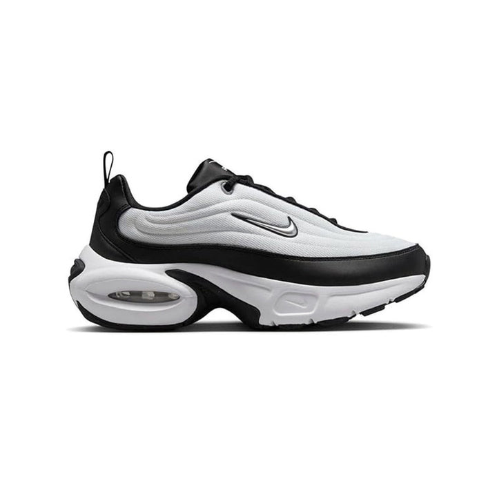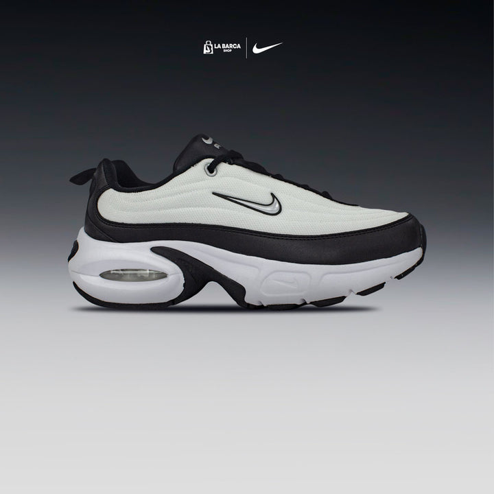 Eleva tu estilo con las Nike Air Max Portal (ref. HF3053 014), unas zapatillas que fusionan la estética icónica de las Air Max de principios de los 2000 con un diseño moderno y cómodo para el día a día. Su plataforma y su mediasuela ovalada aportan altura y presencia, mientras que la unidad Nike Air visible en el talón ofrece una amortiguación suave que parece que caminas sobre una nube. La parte superior combina paneles acolchados con materiales sintéticos en una paleta elegante negro / blanco / plata metalizada, logrando un look versátil y urbano que no pasa desapercibido. Su suela de goma brinda tracción duradera, mientras que detalles de diseño inspirados en modelos de running antiguos añaden carácter visual.