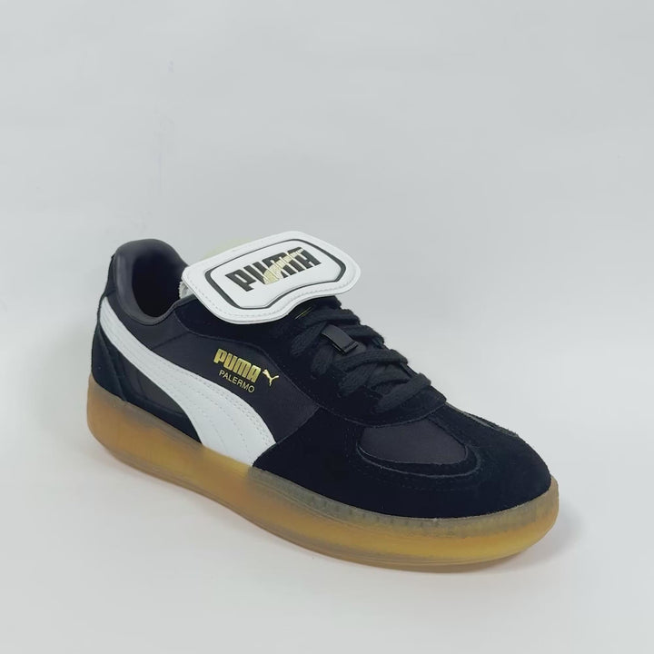 Las PUMA Palermo Moda Tongue son zapatillas casuales para mujer que combinan un diseño inspirado en los años 80 con detalles modernos. Su capellada de nylon negro y detalles en gamuza ofrecen un look retro con un toque contemporáneo. La lengüeta extraíble permite personalizar el estilo, adaptándolo a tus preferencias. La suela de goma proporciona tracción y durabilidad, adecuada para el uso diario.