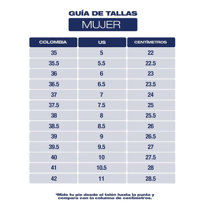 • Entresuela / mediasuela: suela/intermedio moldeado para absorber impactos — lo que ayuda a reducir la carga en pies y articulaciones al caminar o estar mucho tiempo de pie.