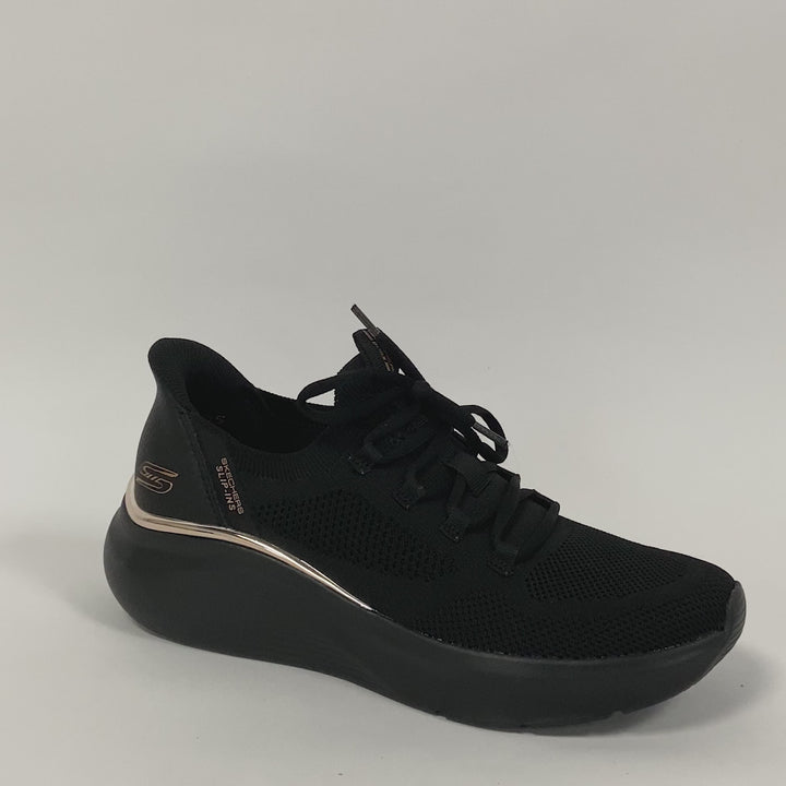 Los Skechers (ref. 117617 BBK) BOBS Sport B Love “True Delight” son tenis slip on diseñados para quienes valoran la comodidad inmediata, estilo relajado y responsabilidad ética. Imagina levantarte, calzártelos sin esfuerzo (“hands free”), y sentir que cada paso te acompaña con suavidad gracias a la plantilla Memory Foam que abraza tu pie. Perfectos para días de ciudad, para caminar, hacer diligencias, o simplemente para vestir casual con un toque moderno. El material tipo knit técnico les da ligereza y ventilación; el talón acolchado (“Heel Pillow™”) mantiene el pie firme. Todo esto con materiales 100 % veganos, lo que le da un plus para quienes cuidan también lo que consumen.