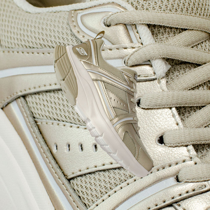 Las Skechers BOBS Sport™ Vamos (ref. SK-117770-GLD) en color Gold son zapatillas deportivas con cordones, ideales para quienes buscan comodidad y estilo en su día a día. Su parte superior de malla con superposiciones sintéticas proporciona transpirabilidad y soporte. La plantilla con amortiguación Skechers Memory Foam™ ofrece confort durante todo el día. La suela flexible con tracción asegura un agarre confiable en diversas superficies. Además, son lavables a máquina, facilitando su mantenimiento. El diseño en color dorado aporta un toque moderno y versátil.