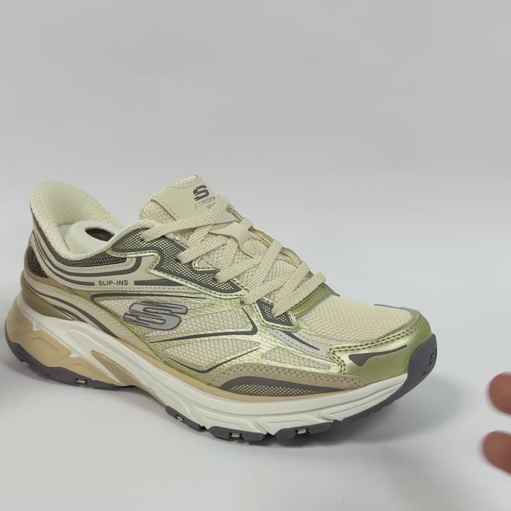Las Skechers Slip ins: Stamina Sport (ref. 150710 NTGD) combinan un diseño urbano deportivo con máxima facilidad de uso y confort. Pertenece a la línea “Hands Free Slip ins®” de la marca, lo que significa que están pensadas para ponerse de manera rápida sin esfuerzo, gracias a un talón diseñado para facilitar el calce. Su parte superior integra malla junto con superposiciones en piel y material sintético, lo que le da una estética ligera y moderna, mientras que su construcción está orientada al uso diario activo: caminatas, salidas informales, estilo casual sport. El conjunto logra un equilibrio entre funcionalidad, comodidad y moda.