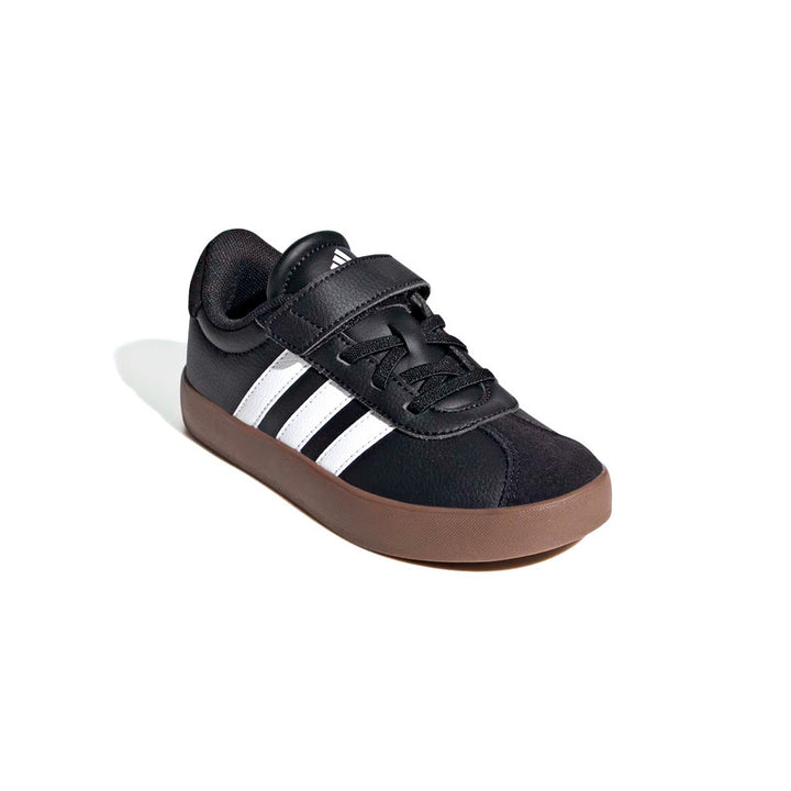 Los tenis Adidas VL Court 3.0 EL C (ref. ID9154) combinan estilo clásico con funcionalidad moderna, ideales para el uso diario de los más pequeños. Su diseño de perfil bajo se inspira en el calzado de skate, ofreciendo un look urbano y versátil. La parte superior combina piel sintética y ante para mayor durabilidad, mientras que el cierre de cordones elásticos con velcro facilita ponerlos y quitarlos sin esfuerzo. Incorporan forro interno textil para mayor comodidad, una suela de goma que proporciona buen agarre y estabilidad, y las icónicas tres franjas de Adidas para un toque auténtico. Son perfectos para el colegio, salidas casuales o cualquier actividad diaria.