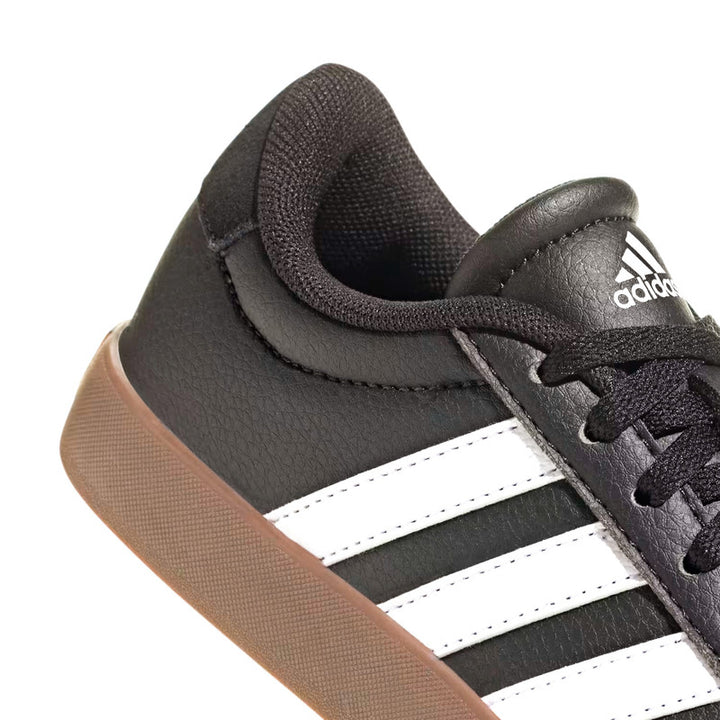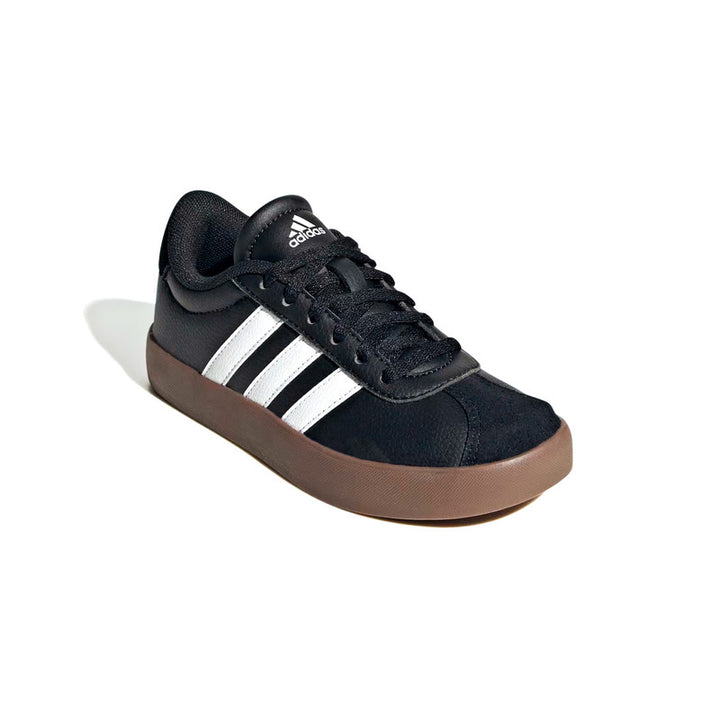 Los tenis Adidas VL Court 3.0 (ref. IE3630) combinan un estilo urbano inspirado en el skate con materiales de calidad pensados para la comodidad diaria de jóvenes. Su parte superior en ante suave, acompañada de detalles en piel sintética, le brinda durabilidad mientras mantiene una apariencia moderna. El interior textil proporciona confort y frescura para usar todo el día. La suela vulcanizada de goma asegura agarre y flexibilidad, ideal tanto para asfalto como superficies planas variadas. Con cierre de cordones clásicos, su color negro con acentos en blanco y suela “gum” los hace versátiles: combinan fácilmente con jeans, shorts o prendas informales para colegiales o adolescentes.