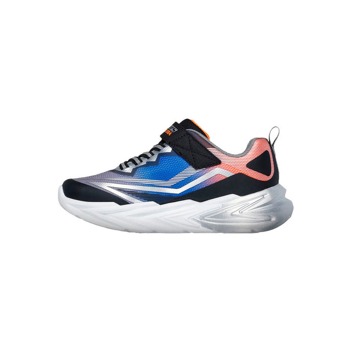 Los Skechers S Lights Flex Glow Ultra (ref. 400139L BKSL) son unas zapatillas infantiles diseñadas para destacar tanto en estilo como en funcionalidad. Esta versión, con combinación de colores negro/plata (“BKSL”), ofrece una parte superior de malla degradada junto con superposiciones sintéticas que brindan soporte y ventilación. Cuentan con un sistema de cierre adaptado que facilita el calce y una media suela con luces integradas que se activan —o se pueden desactivar en tallas mayores— para llamar la atención en cada paso. Ideales para niños activos, para uso diario en la escuela, recreo o salidas informales donde el diseño llamativo y la comodidad son importantes.