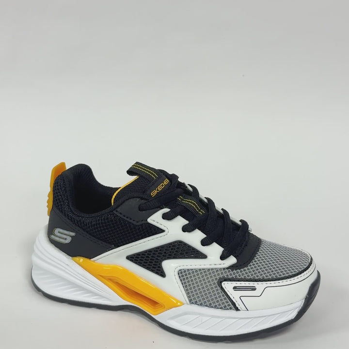 Dentro de la colección infantil de Skechers, los Tenis Skechers Techno Drift (ref. SK 404031L WBK) combinan comodidad, funcionalidad y estilo deportivo juvenil en un calzado ideal para niños que realizan actividades cotidianas, caminatas y recreación ligera. Este modelo incorpora una parte superior de malla transpirable combinada con materiales sintéticos duraderos, que favorece la circulación de aire y mantiene los pies frescos y cómodos durante todo el día.
