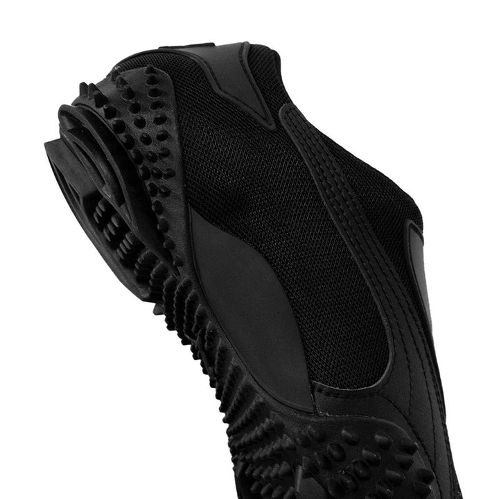 • Suela de goma envolvente con diseño distintivo: la suela sobresale un poco, con textura y “spikes” (detalles en relieve), combinando estilo llamativo y buen agarre/tracción — útil para caminar en superficies urbanas.