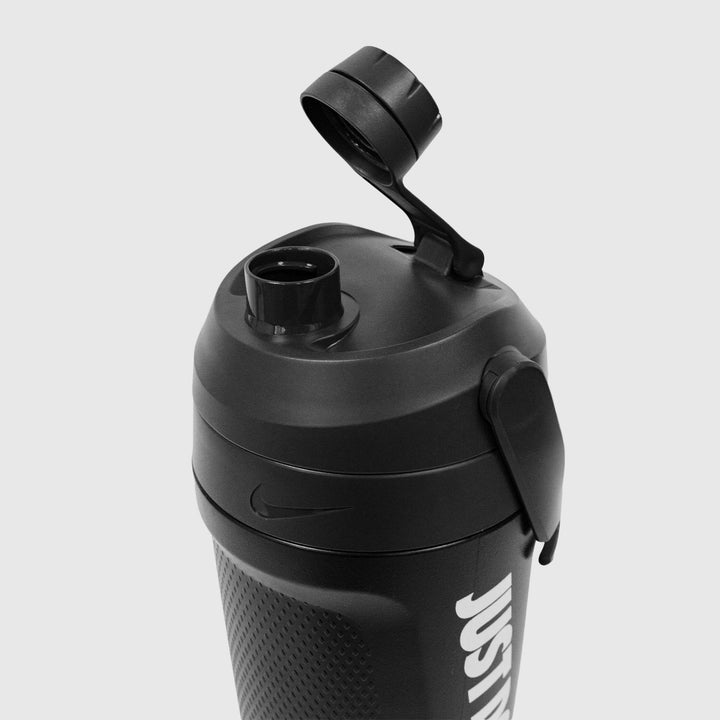 La botella Nike Fuel Jug 40 Oz Chug (ref. N100311005840) es una compañera ideal para quienes buscan mantener una hidratación abundante y confiable durante entrenamientos, partidos o actividades intensas. Con capacidad de 1.18 litros (40 onzas), esta jarra está diseñada para ofrecer un flujo de agua rápido a través de una boquilla con válvula que previene fugas. Su diseño robusto combina materiales duraderos con componentes ligeros, y su asa plegable facilita su transporte o colgado en mochilas. Fabricada con materiales libres de BPA y con una combinación de polímeros que garantizan resistencia, esta botella no solo es funcional, sino también cómoda para el uso diario. En color negro / blanco, su estética neutra encaja con cualquier equipo deportivo.